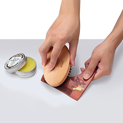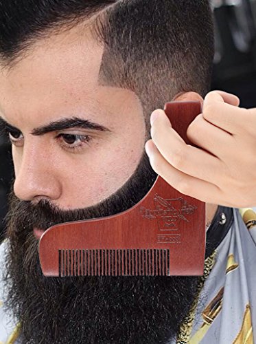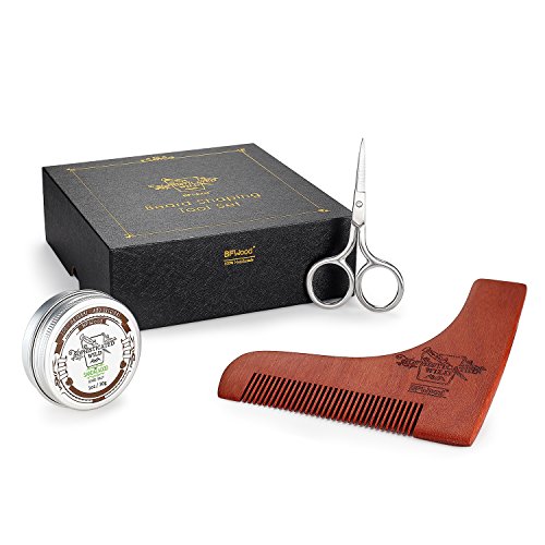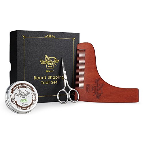 BFWood Beard Shaping Tool and Scissors Kit – Precise Moustache Scissors + Wooden Shaping Template + Beard Balm Sandalwood Scent 30g