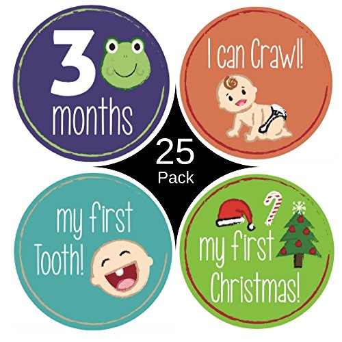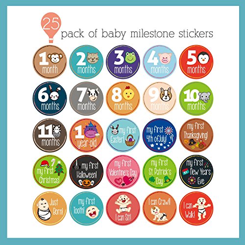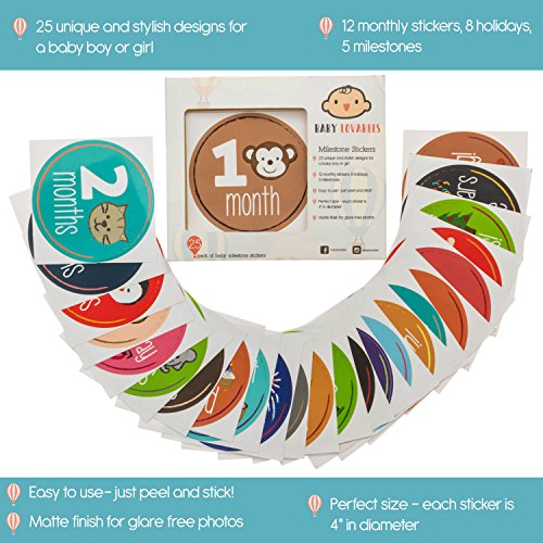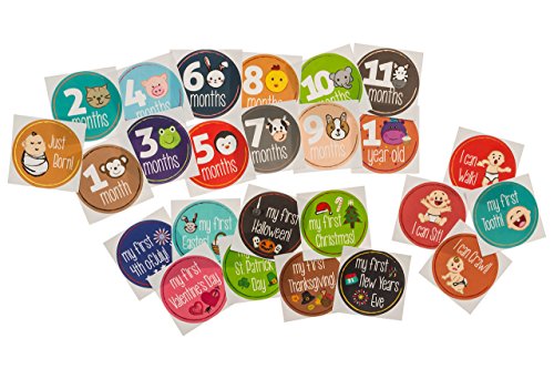 Key highlights: ?Glare reducing matte finish on each sticker which enhances the photo quality ?Easy to use. Just peel and stick! ?4" in sticker is the perfect size for your baby's outfit ?100% money back guarantee ?Important milestones and holidays included -From "Just Born" to "1 Year Old" we have every month covered! -Includes the following holidays: Christmas, New Year's, Valentine's Day, St. Patrick's Day, Easter, 4th of July, Halloween, Thanksgiving -Milestones: I can sit, I can crawl, I can walk, My first tooth