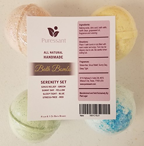 Bath Bombs Luxurious Serenity Gift Set (Four Large 6.1 oz bombs) All Natural Handmade
