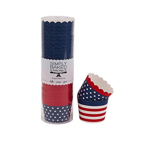Simply Baked Small Paper Baking Cup, Red, Whte, & Blue Stars and Stripes, 24-Pack, Disposable and Oven-safe