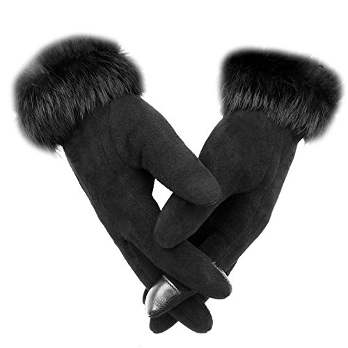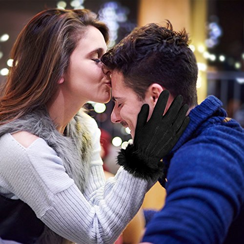 Material: Genuine Deerskin Suede Leather Shell,Soft Wool Lining,and Rabbit Fur Cuff