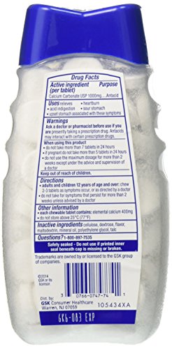 Studio : GSK Publisher : GSK Binding : Health and Beauty Product Description TUMS Ultra Strength 1000 antacid contains double the acid neutralizing power per tablet vs. Regular Strength TUMS product. TUMS Ultra Strength 1000 relieves acid indigestion, heartburn, sour stomach and upset stomach related to these symptoms. Goes to work in seconds, helping make it America's #1 antacid. Many other heartburn medications are absorbed into the bloodstream and can take hour or days to fully work. TUMS antacid travels directly to the source of the heartburn, dissolving easily and neutralizing acid on contact - for fast relief. 0