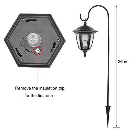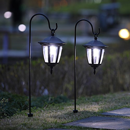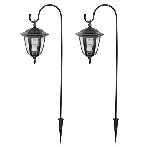 - Solar powered-- powered by free solar energy and no electricity required. The solar panel supports long-term operations. Package includes 2 lights, 2 shepherd hooks.