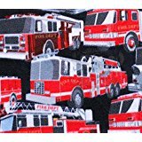 2 Yards Pre-Cut- RED FIre Trucks on Black Non-Pill Fleece Fabric (Great for Quilting, Sewing, Craft Projects, Curtains, Pillows, Etc.) PRECUT 2 Yards x 60" Wide