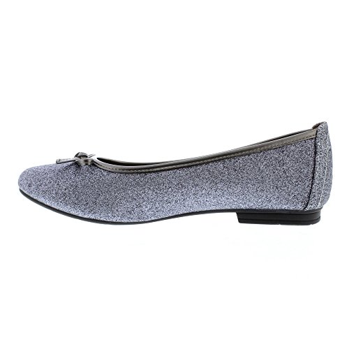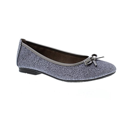 Studio : Soft Line Publisher : Soft Line Binding : Apparel Product Description A stylish pair of slip on ballerina pumps with a dainty bow on the toe and striking glittery uppers. Featuring a soft yet durable footbed and textured tread on the sole. Designed to be a wider fitting shoe for added comfort and extra wriggle room. 0