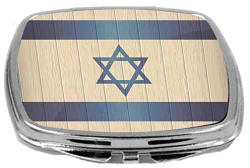 Rikki Knight Compact Mirror on Distressed Wood Design, Israel Flag, 3 Ounce