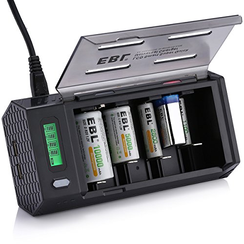 EBL LCD Smart Battery Charger for C/D/9V/AA/AAA Rechargeable Battery Ni-MH Ni-CD with 2 USB Port for Phones & Discharge Function (Batteries Not Included)