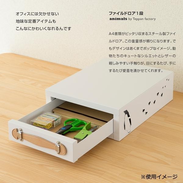 A4書類がピッタリ収まるスチール製ファイルドロアです。この重量感が頼りになります。でもデザインはあくまでポップなイメージ。オフィスには欠かせない地味な定番アイテムも、ねこのシルエットで可愛らしく。ねこのキュートなシルエットとレザーの親しみやすい手触りが、目にするたび、手にするたび愛着を湧かせてくれます。 |