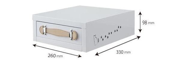 | サイズ | 本体:W260mm×D330mm×H98mm、引出し内寸:W215mm×D310mm×H35mm、板厚:0.6mm 個装サイズ:34×27×11cm |