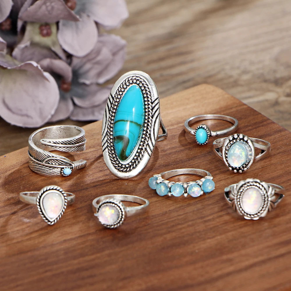 Function:Opal Knuckle Rings Set For Women