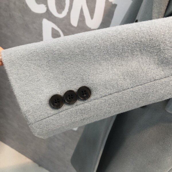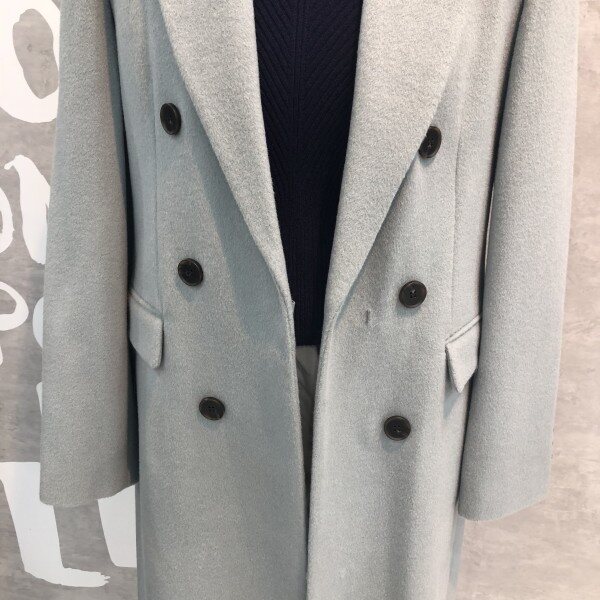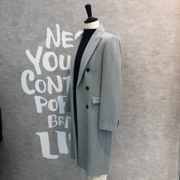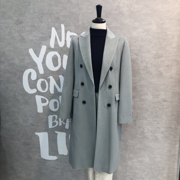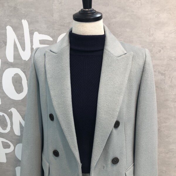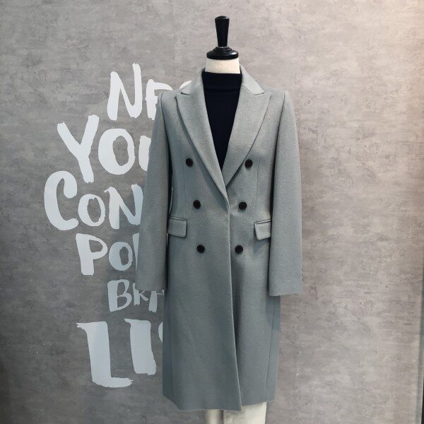 롱기장에 피크트 라펠이 시크하며 더블버튼 디자인이 클래식한 울 블렌드 재킷입니다
