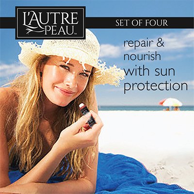 SPF 15 LUXURY LIP BALM GIFT SET: The Indulgence Set by L'AUTRE PEAU | Special 4 pack set - Passion Fruit, Pomegranate, Raspberry & Spearmint Flavors. The smooth texture of our lip balms give you the luxurious spa feel that only comes with high quality skincare. Makes a great gift idea.