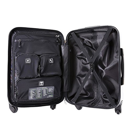 Product Description This is a 2 piece bundle consisting of 21" Carry On 29" Check-in Upright in Jet Black. "Aerial" is the newest collection by Genius Pack designed for maximum capacity and minimalist design. Boasts durable 360-degree spinner wheels, a secluded laundry compartment, interior category compartments for a think-free packing experience, integrated packing checklist. WHAT IT HAS: ? 360-degree durable spinner wheels ? Secluded laundry compartment ? Permanently embedded packing checklist ? Interior category compartments for socks, chargers, undergarments ? Maximum carry on size meets international and domestic requirements ? 100% aluminum telescoping handle with 2 lock positions ? Top and side easy grab gel print handles ? Compression straps in main cavity secure bag contents ? 4 molded side feet keeps bag protected ? Rubberized push button handle for enhanced comfort ? Scratch and stain resistant ? Reinforced impact-resistant corners ? Main access zipper # 10 size ? Interior packing capacity: 43 L for the Carry On. 94 L for the Check-in. ? Extremely lightweight. Only 6.2 lbs for the Carry On. 7.8 lbs for the Check-in. ? Dimensions: Carry On: 21.5 x 14 x 9 in. including wheels and handles. Check-in: 29 x 18 x 11 in. including wheels and handles. 0