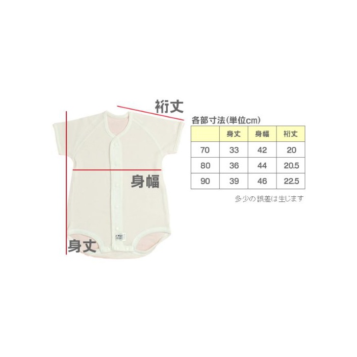 원본상품명: ラモルフェ フライス前開き半袖ボディス?ツ 2枚組 ベビ?肌着
