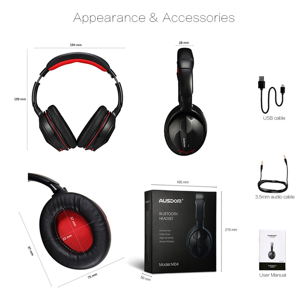 Item: AUSDOM Bluetooth Headphone M04s Black