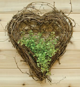 - Our Vine Wall Heart makes a cute, customizable country gift when paired with lights, ornaments, and florals! Natural, dried grapevine over a wire frame, with a pocketed edge. 13-1/2" H x 12" W.