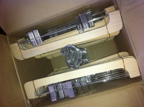 -. Title : 14" Wood Chrome Pant & Skirt Clip Hanger Natural Finish Lot of 50 New