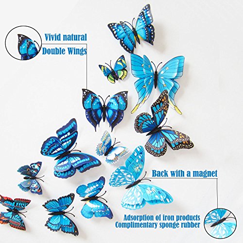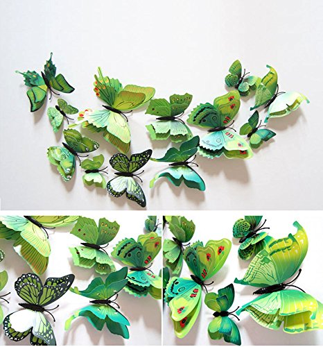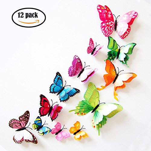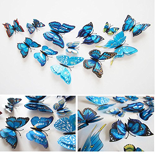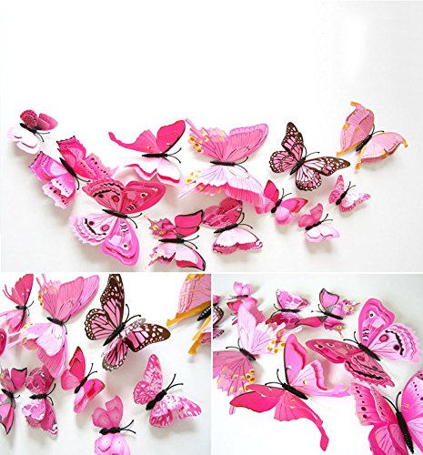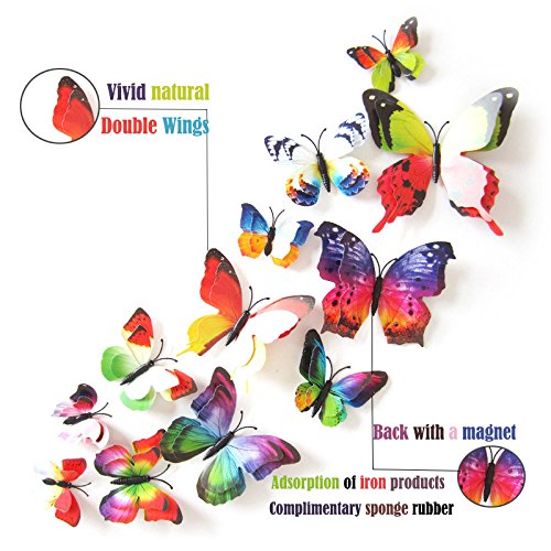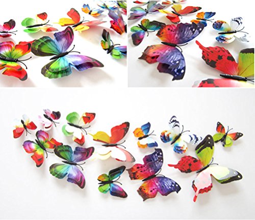 -. Title : Romantiko 24 Pcs Fashion 3D Double Wings Butterfly Stickers Decor Decal Wall Stickers Art For Home and Room.