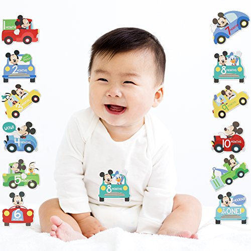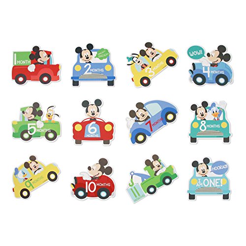 ★ Capture first year milestones with Disney Mickey Mouse. Designed in gift set packaging, set features 12 milestone belly stickers with each sticker featuring the new month of your little one in a car shaped design.