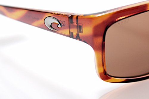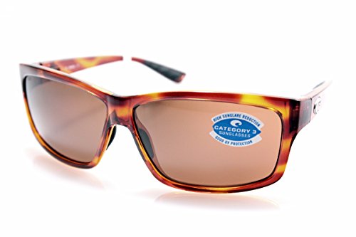 Costa Del Mar Sunglasses, style Cut is a rx-able rectangular nylon sport frame with polarized polycarbonate lenses. The Cut is designed with corrosion-resistant stainless steel hinges, adjustable wire core temples and special materials on the saddle nose bridge and temples to ensure comfort and minimize slippage. The Costa Del Mar logo is engraved on the temples. These Costa Del Mar Sunglasses have lightweight polarized scratch/impact resistant polycarbonate lenses that provide amazing clarity and 100% UV protection.Feature