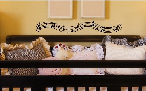Music Scale with Notes Vinyl Lettering Wall Decal Sticker (Black)