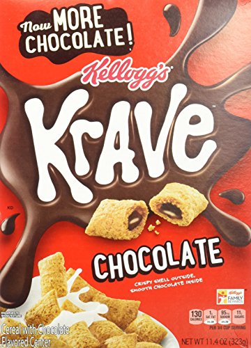 -. Feature : Satisfy your inner chocovore with Kellogg's Krave Chocolate cereal. Inside each crunchy bite hides a smooth chocolate center. / Crispy shell outside, smooth chocolate inside. / Cereal with chocolate flavored center. / This product ships as a case of 10 (11.4-Ounce boxes).
