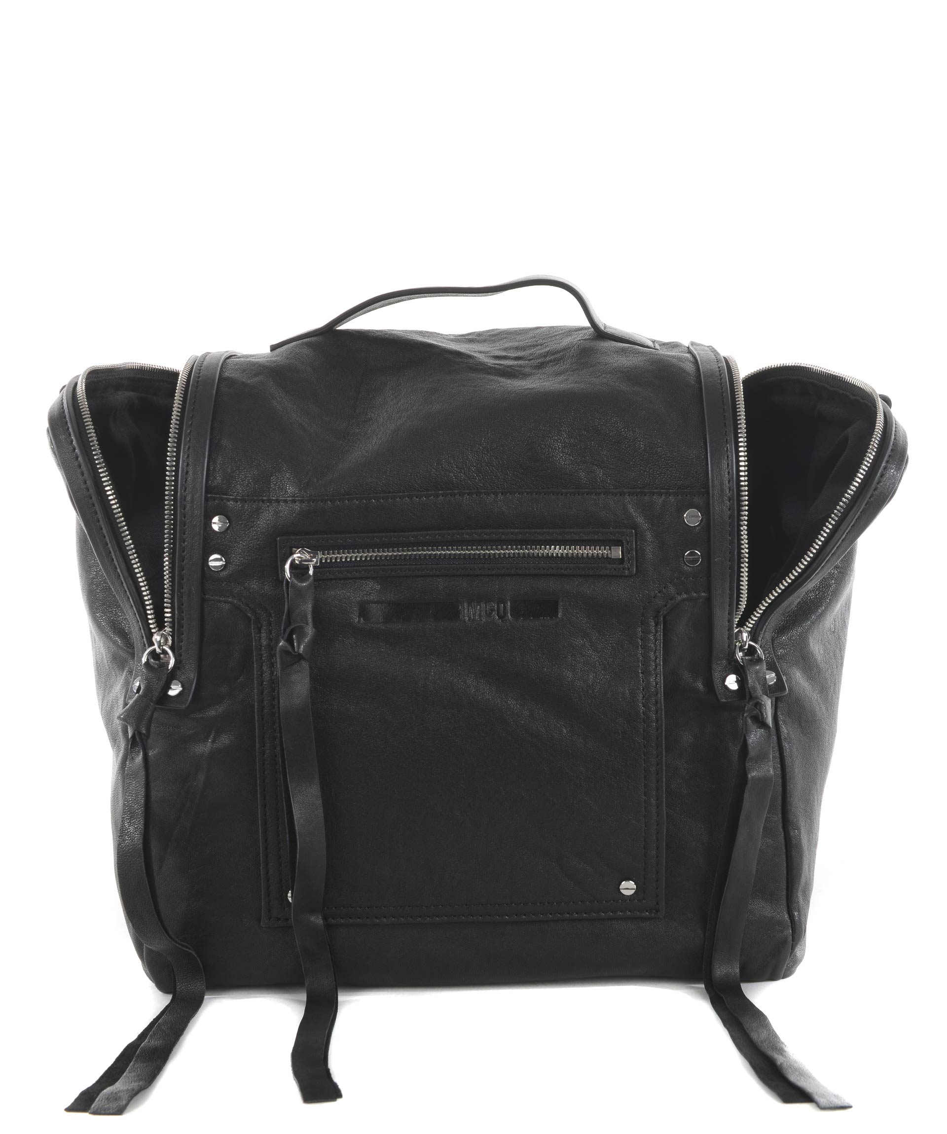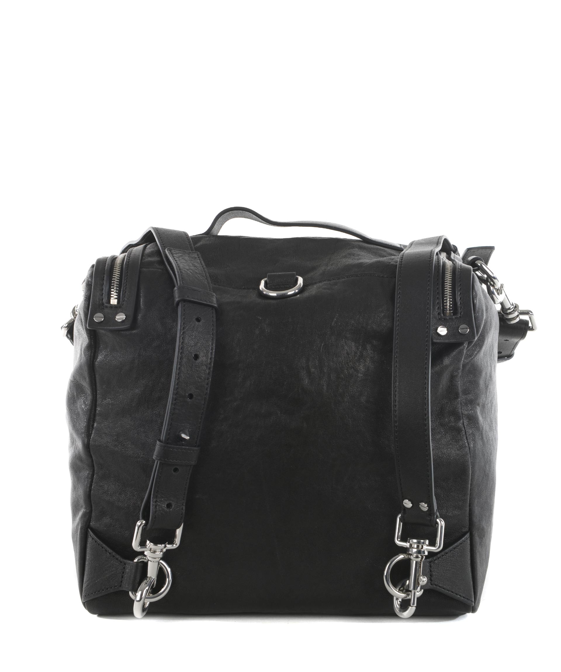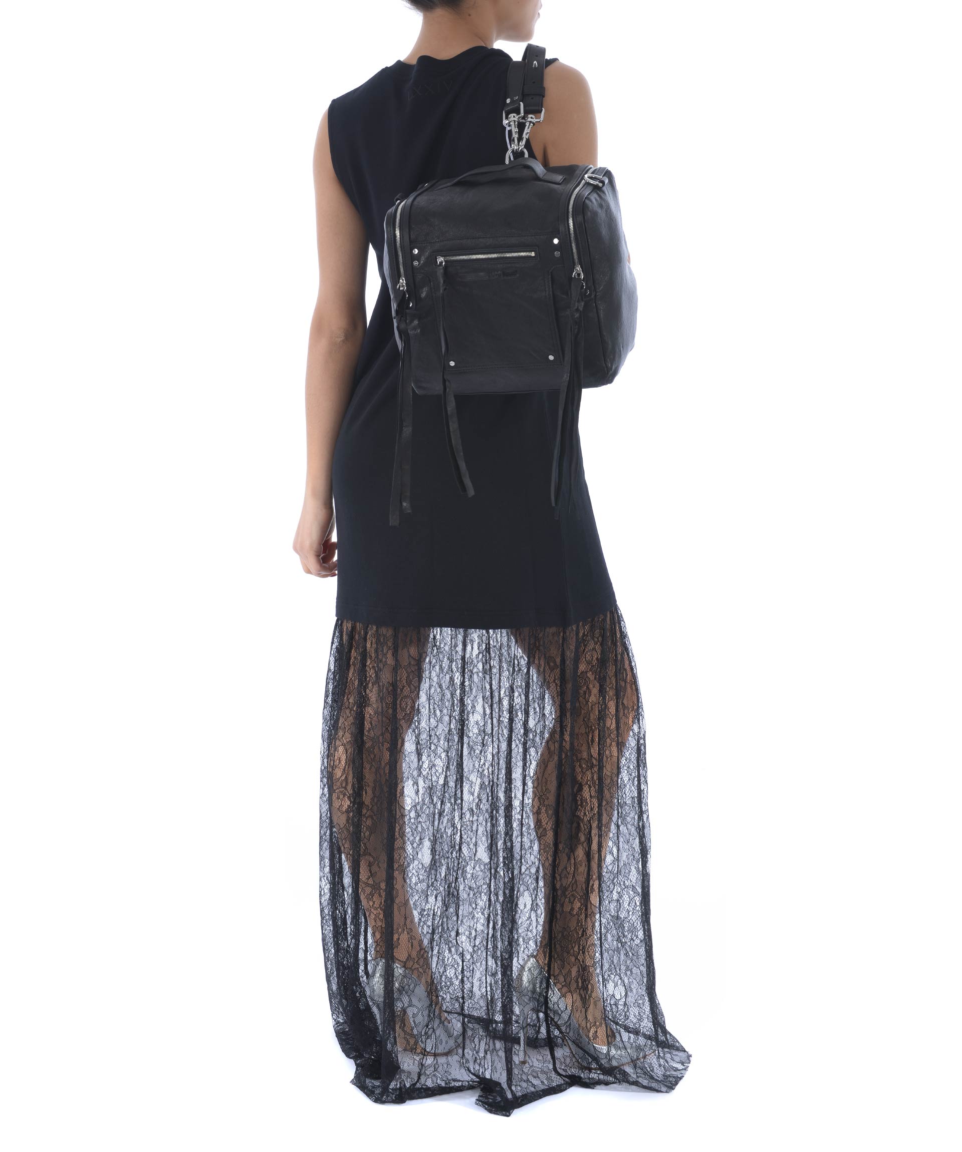 Zaino MCQ Alexander McQueen in pelle Nera. Manico morbido in pelle. Spallacci in pelle regolabile e removibile. Tasca esterna con zip. Tasca interna con zip. Doppia chiusura con zip. Foderata.