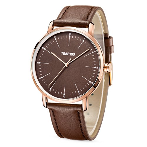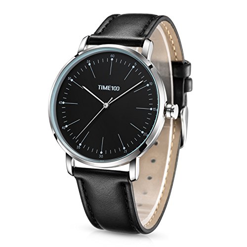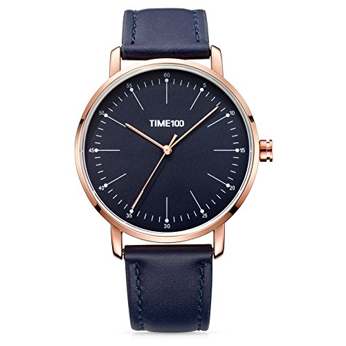 -. Title : Time100 クオーツ腕時計 経典ビジネス シンプルなデザイン 薄形  メッキ合金殻  強化ガラス 本革ベルト 30M防水 メンズ腕時計  W80223G
