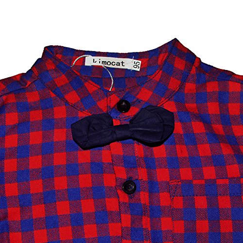 -. Feature : ❤MATERIAL: Tops-60% cotton, 40% polyester;Pants-75% cotton, 23% polyester, 2% spandex / ❤EASY CLEANING: Machine washable,not shrunk or damaged after washing / ❤ADORABLE: Dark-red check woven pullover with a bowtie pinned on clothes, it's safe enough for 1-3 age boys / ❤CONVENIENCE WEARING: Jeans pants feature elastic waistband with zipper closure and pan,and you can wear a belt if the waist too loose / ❤PERFECT FOR MANY OCCASIONS: Daily Life, School, Wedding, Family Celebrations,Easter,Birthday Party and so on.Great gift for your baby