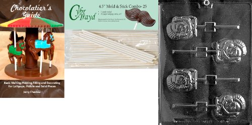 Cybrtrayd 45St25Bk-T041 'Turkey Lolly' Thanksgiving Chocolate Candy Mold with 25 4.5-Inch Lollipop Sticks and Chocolatier's Guide