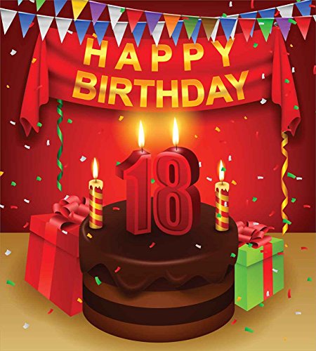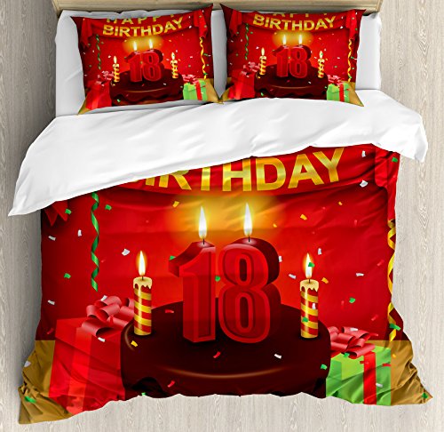 (Ambesonne)/Bedding Bath/Bedding/DIRECT FROM USA/18th Birthday Decoration Duvet Cover Set by Ambesonne, 18 Happy Birthday Party with Curtains Ca...