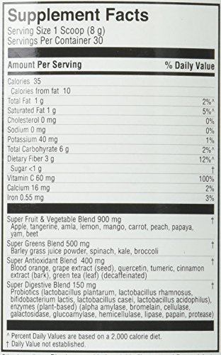 Product Description Go Greens Purple Superfood Blend Healthy To Go! 20x More Concentrated Than Grass Antioxidant Activity of 6 Servings of Veggies Fruits Supports Healthy Aging Resveratrol 30 Calories Vegan/Non-GMO Dietary Supplement 0