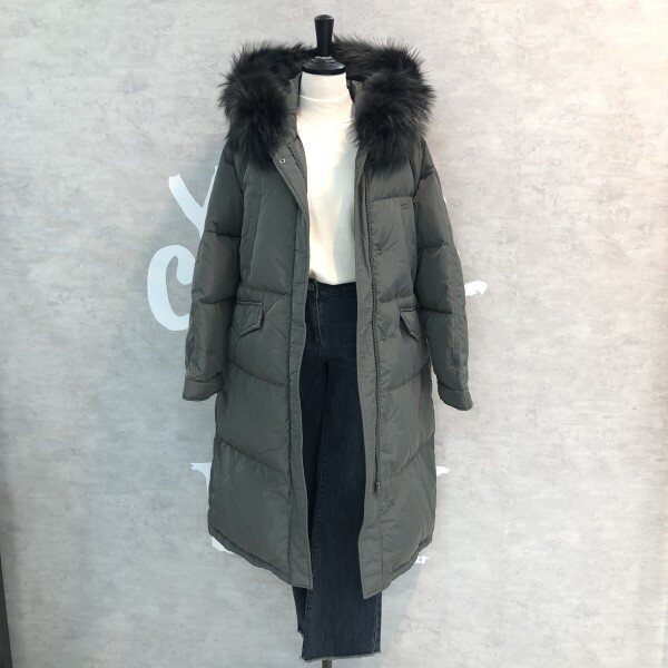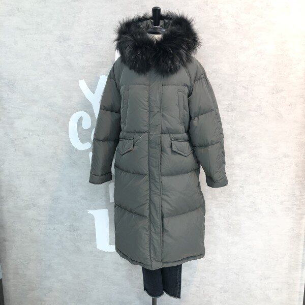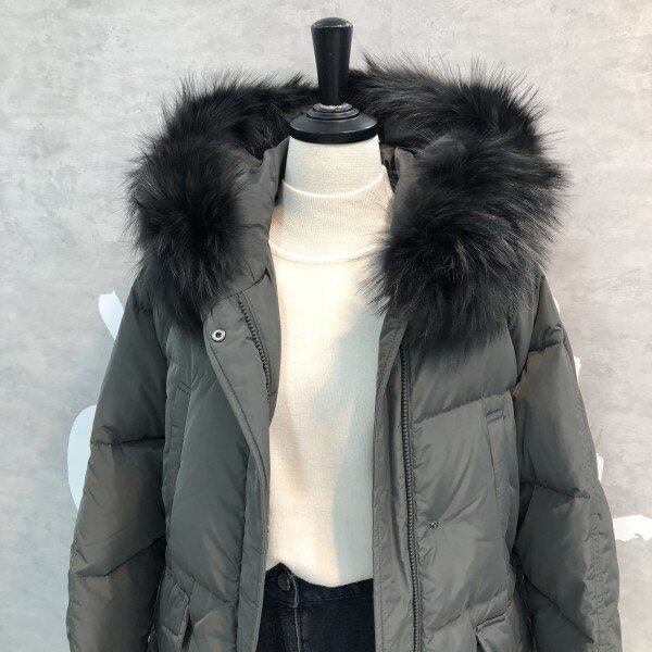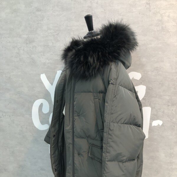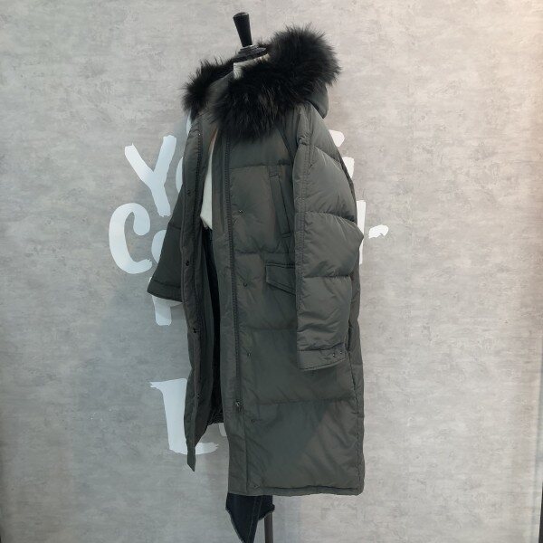 탈착 라쿤 트리밍 후드가 포인트인 롱 기장의 프리미엄 구스다운 점퍼입니다