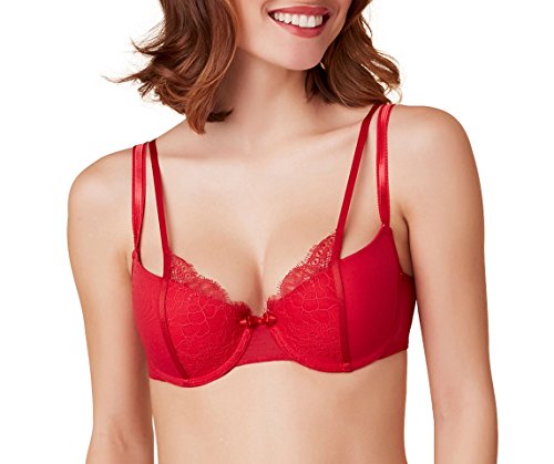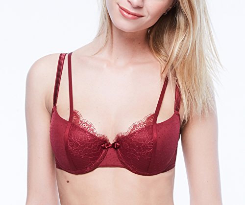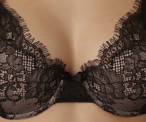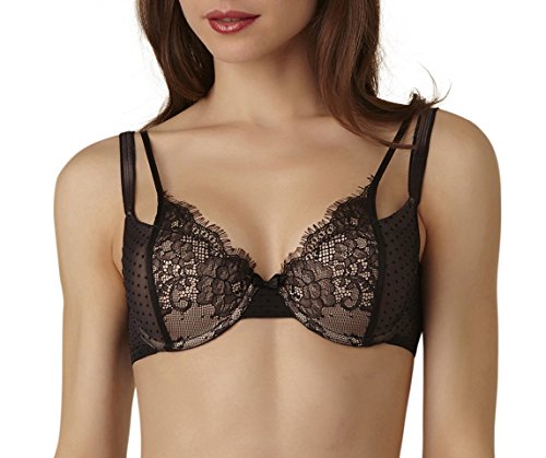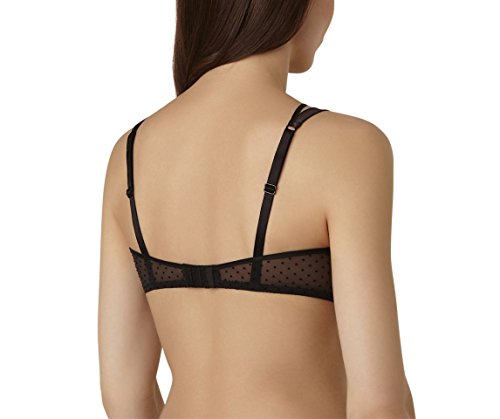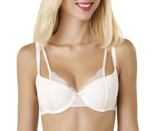 Immer positiv, temperamentvoll und frech: Passionata ist pure Lebensfreude! Die Serie Belle De Jour kombiniert hochwertige Materialien mit alltagstauglichen Passformen und bringt Glamour in den Alltag. Der sexy T-Shirt-BH ist ein absolutes Highlight, da er nicht nur besonders verfuhrerisch aussieht, sondern auch noch ein Multitalent ist: durch die herausnehmbaren Push-Up Kissen kann der BH tagsuber als dekorierter T-Shirt-BH und abends als sexy Push-Up-BH getragen werden. Die Cups bestehen aus einer floralen Spitzenverzierung um den Steg und der restliche Cup ist mit Punktchentull uberzogen. Hubsche Satinbander, die mittig am Cup platziert sind, dekorieren das Dekollete besonders. Susse Details sind die aufwendig verarbeiteten Trager und die matt-satinierten Optik. Der Verschluss hat drei Hakenreihen mit je zwei Haken. Die Unterbrustweite kann so uber drei Stufen reguliert werden.