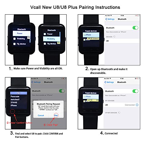 Updated Version U8: Long Battery Life, Dial, SMS, phone book, call history, BT notification, BT music, long-distance capture, pedometer, sleep monitor, anti-lost Alarm, power save mode etc.