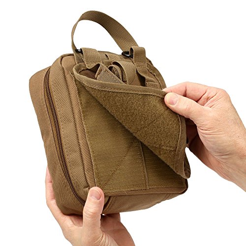 RAPID REMOVAL:rip away Velcro panel and wide handle for removal or carrying quick access to first aid supplies