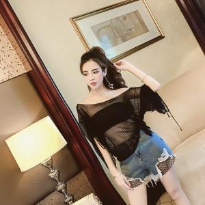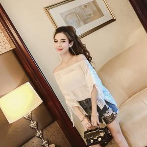 メッシュニット ゆたtり ドルマンニット ニットトップス 陽射し除け サマーニット プチプラ フレア袖 ワンショル トレンド