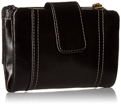 -. Feature : Interior details: 1 bill compartment, 2 slip pockets, 1 zipper pocket, 1 id window, 12 credit card slots / Hardware: old english brass polished / 5.5"l x 1.5"w x 4"h