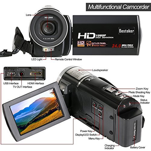 1080P Camcorder, Besteker Portable FHD COMS Max 24.0 Mega Pixels Digital Video Camera DV 3.0 Inches