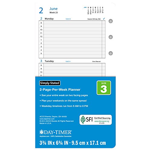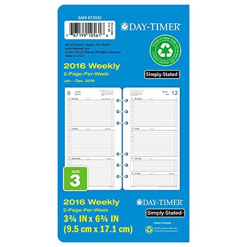 Day-Timer Simply Stated Weekly Planner Refill 2016, 12 Months, Loose-Leaf, Portable Size, 3.75 x 6.75 Inches (12058)