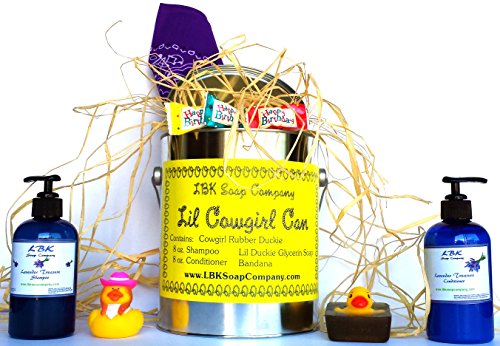 -. Title : LIL COWGIRL CAN LAVENDER TREASURE HAPPY BIRTHDAY ENCOMPASSES 8OZ LAVENDER TREASURE SHAMPOO AND CONDITIONER,3OZ LAVENDER GLYCERIN SOAP WITH RUBBER DUCKIE,3 HAPPY BIRTHDAY MINTS ,PURPLE BANDANA AND A SASSY DUCKIE IN A ECO FRIENDLY PAINT CAN PERFECT FOR THAT HONEY DO LIST.