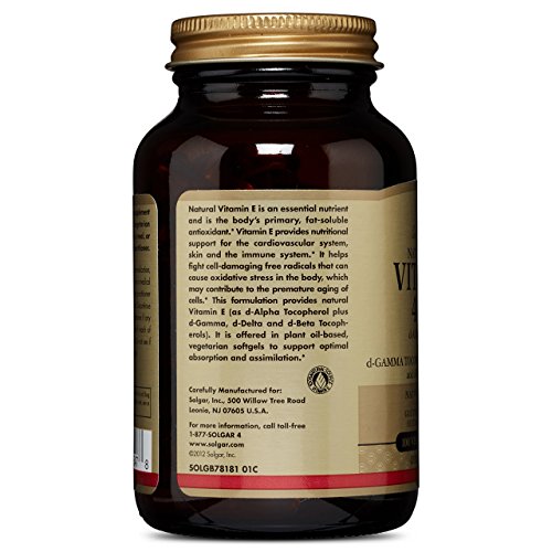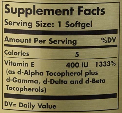 WHAT'S INSIDE - The formulation of Solgar Vitamin E 400 IU softgels provides a natural source of Vitamin E (as d-Alpha tocopherol plus d-Gamma, d-Delta and d-Beta tocopherols).