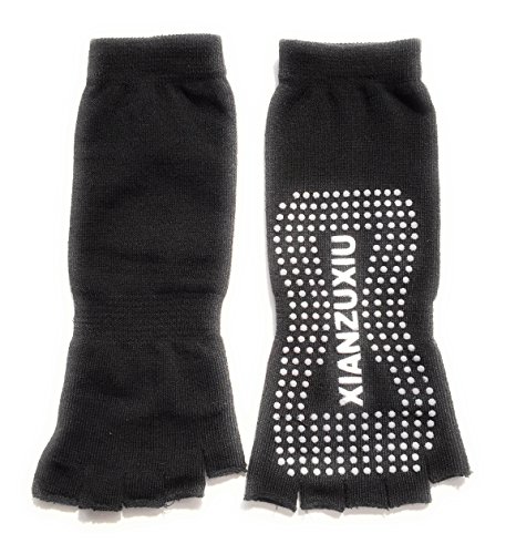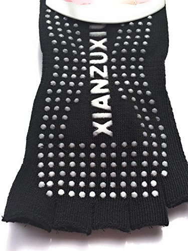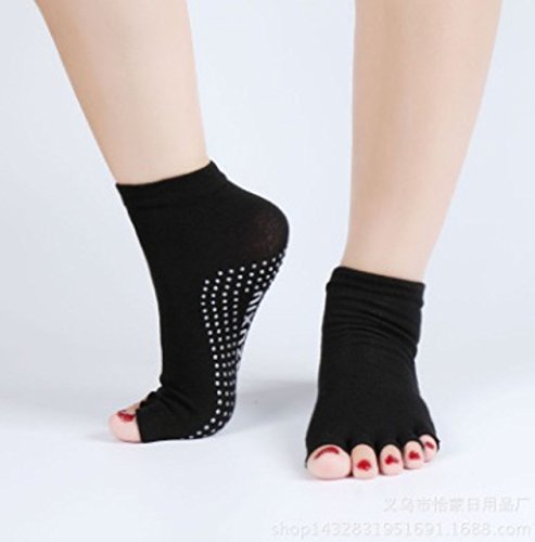 【ASPALAND】5개 손가락 요가 삭스 손가락 없음 미끄럼방지 첨부(부)【23-25CM 방향 / 3족 세트】발가락 세라피(therapy) 블랙