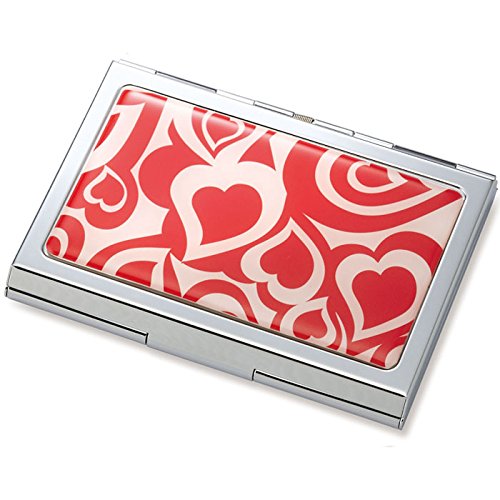 (MG Gifts)/Accessories/Wallets, Money Key Organizers/DIRECT FROM USA/Red Pink Heart Epoxy - Metal Chrome Plated Business Card or Credit Card Case Holder Bl...