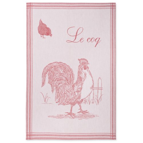 Coucke French Jacquard Cotton Kitchen Dish Towel Farm Animal Collection, Le Coq (Rooster) PJ, 20-Inches by 30-Inches, Red
