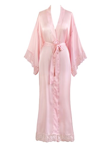 Old Shanghai Women's Kimono Robe Long - Lace Trim (Light Pink)