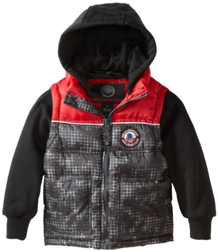 Weatherproof Big Boys' Bubble Vest with Attached Jersey Hoodie and Sleeves