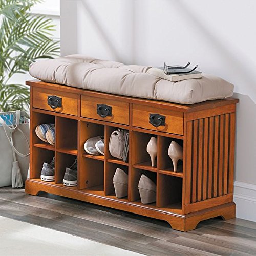 -. Brand : DermaPAD -. Feature : The Shoe Bench is as practical as it is beautiful, with 12 cubbies for footwear and 3 drawers with black metal pulls for gloves, scarves, or other items. / You'll have a comfortable place to sit as you remove or put on shoes or boots. / This entryway bench features quality furniture detailing and metal drawer pulls. / This shoe bench includes 3 pull-out drawers for extra storage. Weight capacity of entryway bench is 225 lbs. / Overall: 38-1/2"W x 13-1/2"D x 20-3/4"H Cubbies: 5-1/2"W x 13"D x 6"H -. Label : DermaPAD -. Manufacturer : DermaPAD -. ProductGroup : Furniture -. ProductTypeName : HOME_FURNITURE_AND_DECOR -. Publisher : DermaPAD -. Studio : DermaPAD -. Title : DermaPAD - Entryway Bench with Shoe Storage and Drawers