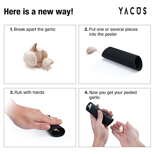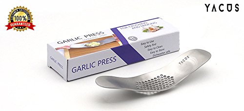 YACUS Stainless Steel Garlic Press for crushing & mincing with BONUS Silicone Garlic Peeler Tube + Cleaning Brush