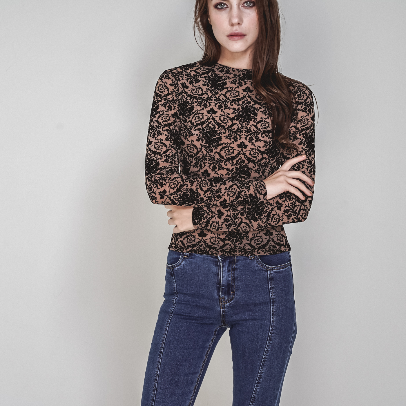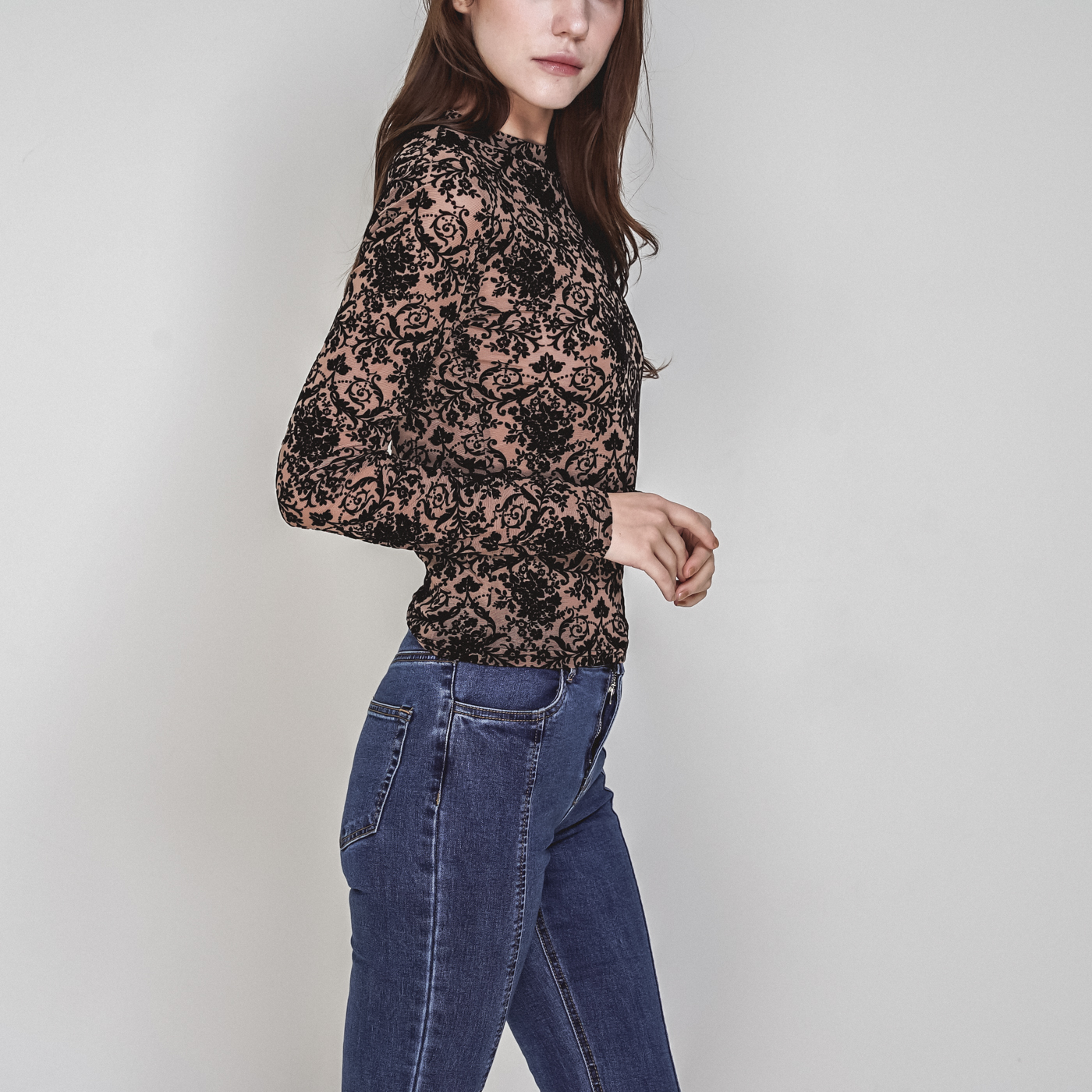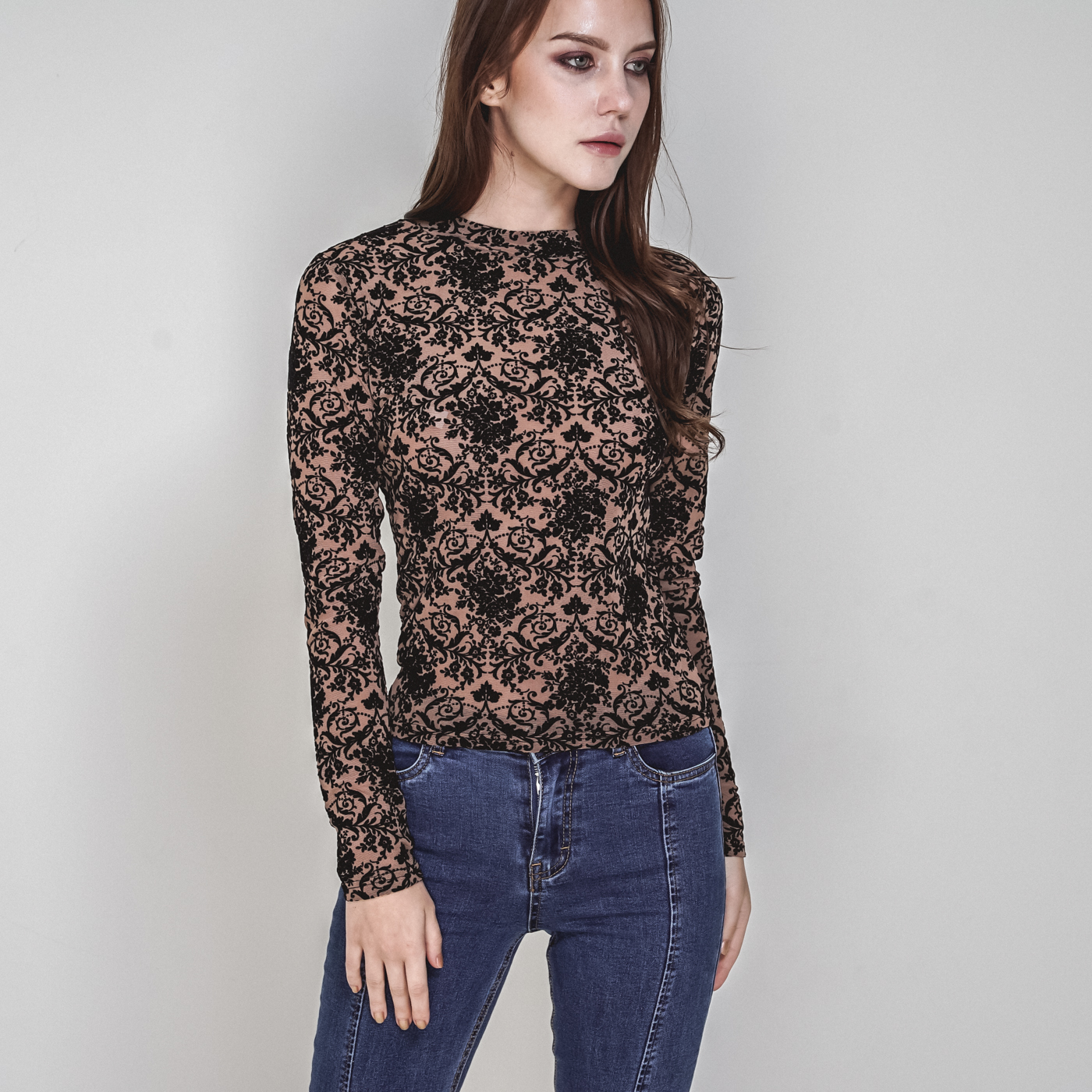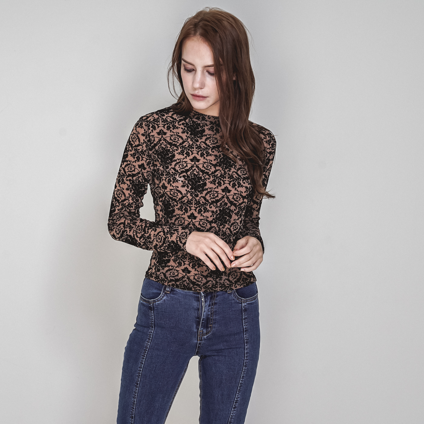 하이넥 레이스 디자인으로 섹시하면서 시크한 스타일입니다.